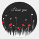 I Love You Minimalist Red Black and White Poppies Classic Round Sticker