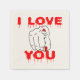 I Love You text with red blood dripping letters and a line drawing of a female hand with an index finger pointing at the viewer. For fun and love. Paper Napkin.