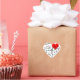 Large silhouette image of musical notes and clefs in the shape of a heart, a small image of a red heart behind the black notes. Text I Love You to the left of the red heart. White background. A heart shaped sticker for anyone. Customisable. You can change the text.