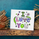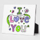 Really cute whimsical I LOVE YOU decorative text design. Image available on various gifts and products.