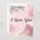 Send heartfelt messages with our "I Love You" Postcard, adorned with a delicate watercolor background in blush and other pink tones, embellished with charming flower sketches. With "I love you" elegantly written across the centre, this postcard is perfect for expressing your affection to someone special. Whether it's for a romantic gesture, a thoughtful note to a friend, or a sweet reminder to a family member, this postcard captures the beauty of love in its simplest form. Share your sentiments with grace and charm using our "I Love You" Postcard, a timeless token of affection.