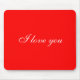 Express your emotions with this red mousepad with I love you in white. The text is fully customisable.Design by Ruth Jolly.
