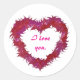 A wispy heart in shades of red and pink, is printed on custom stickers. The text says, I love you, and it can be easily customized.