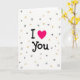 This greeting card features the message “I ❤️ You” right in the middle on a white background. The words “I” and “You” are written in rounded black letters that feel friendly and easy to read. Between them sits a bright fuchsia heart that stands out as the main focus 💘. Around the center message, there are many small hearts that look like quick pen drawings scattered in a loose circle. Some of these little hearts are outlined in black, while others are outlined in golden yellow, adding a warm, festive touch ❤️. The open white space keeps everything clear and puts your attention on the words and the hearts. It’s a simple, sweet way to say how you feel and share Valentine’s Day.
