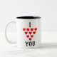 "I love you" script with hearts Valentine's Day Two-Tone Coffee Mug