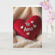 This Valentine's Day card shows a plump red heart pillow centered on a soft, cream-colored background. The heart looks velvety and slightly rounded, like it’s meant to be hugged. Around it is a thick layer of fluffy fabric that sticks up in tiny soft points, making the heart feel cradled and cozy. Across the front of the heart, the words “Te Amo” appear in white stitched lettering, curved gently from left to right. The letters look like flowing cursive stitching, and a few small outlined hearts in the same white thread sit near the wording. Soft lighting creates mild shadows that help the heart and the fuzzy background stand out without feeling harsh. It’s a warm, romantic design that feels sweet and comforting, perfect for saying “I love you” 💕❤️.