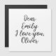 Cute personalizable text template: Dear Emily, I love you, Alexander. Click edit and change only the names or the entire text.
