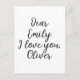 Cute personalizable text template: Dear Emily, I love you, Alexander. Click edit and change only the names or the entire text.