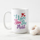 I love you the most. The final word in "I love you more". This is the perfect mug for that special someone.