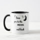 This adorable mug say's I love you to the moon and back in black with black stars and a moon.