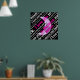 I love you to the moon and back typography print with a purple moon and purple hand drawn heart in the background.  The words "I love you to the moon and back" are repeating in various sizes at a diagonal across the page.