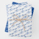 These wrapping paper sheets features one sheet that is white with blue hearts and the words 'I Love You', one sheet that is blue with white hearts and the words 'I Love You' and one sheet that is white with blue stripes.