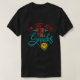 I give wanted to give this a 4 instead of a 5 because these Basic DARK T0shirts run unexpectedly SLIM or Narrow. Which is great if you do not have a potbelly, but I have a paunch. It isn't the shirt's fault that I've got a beer belly. The design and shirt itself is a quality cotton shirt. The color is more of a deep purple, but still a very pretty color. The Basic DARK T-shirts run a bit SLIMMER than the Basic Ts. The neck is a fraction narrower (or seems to be narrower) also. I'm a paunchy middle-aged woman and my neck is 12 inches (31cm) thick and the neckline fell about the same as in the photo of the man, and I had the desire to tug it a bit. So if you're a thick necked man or like loose shirts, be aware these are slimmer shirts. Once I get rid of my lockdown paunch it'll look great. The shirt washed well in cold water with no apparent bleeding. We don't have a dryer, so it hung dry. Did not shrink. Love the colors and the design. The design looks smaller on my shirt than it does on the model on-line. But still, it looks good on the shirt. The printing looks as it does on the model, just the size seems fractionally smaller. Washed garment in cold water, hung dry and design appeared unaffected.