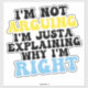 Make your point loud and clear (with a side of humour) with this bold and witty sticker! Featuring the phrase, “I’m Not Arguing, I’m Just Explaining Why I’m Right” in eye-catching yellow, black, and blue bubble-style fonts, this sticker is perfect for anyone who loves sarcasm and confidence.