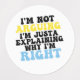 Make your point loud and clear (with a side of humour) with this bold and witty sticker! Featuring the phrase, “I’m Not Arguing, I’m Just Explaining Why I’m Right” in eye-catching yellow, black, and blue bubble-style fonts, this sticker is perfect for anyone who loves sarcasm and confidence.