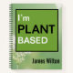 Simple design suitable for vegetarians or vegans. "I'm Plant Based" in classic black and white on a seaweed green. Pastel flowers background with bee (front and back cover). Customise with your name. Available in different sizes. This sample is ruled, but there are several different inside paper designs, including graph, recipe and sketch (blank). The spiral itself has six different colour choices.