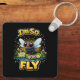 A cheerful cartoon fly with oversized red eyes stands proudly on a lily pad beneath a sparkling night sky, celebrating humor, confidence, and playful charm.