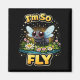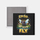 A cheerful cartoon fly with oversized red eyes stands proudly on a lily pad beneath a sparkling night sky, celebrating humor, confidence, and playful charm.