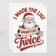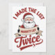 I Made The List Twice Naughty Christmas Santa Holiday Card