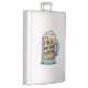 The product is a good size and came exactly as it was pictured. The lid is not attached to the flask, which could be dangerous on drunken nights... The print came out surprisingly well and looks very sharp. Would definitely recommend.