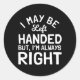 I May Be Left Handed But I'M Always Right Left Han Classic Round Sticker