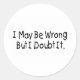 I May Be Wrong But I Doubt It Classic Round Sticker