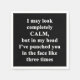 For the sarcasm lover in all of us.  Check out this witty “I May Look Completely Calm, but in my head I've punched you in the face like three times” design on apparel, mugs, mousepads, buttons, and other unique gifts.