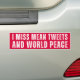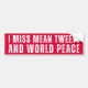 I Miss Mean Tweets and World Peace, Anti Joe Biden Bumper Sticker