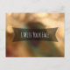 This subtle, fun postcard is perfect for dropping a note to anyone you've been missing. The background is covered in a subtle, artistic gold-hued photo of an intentionally-blurred bokeh scene with reflective lights and the hint of a peacock feather. Over that is a partially-opaque black horizontal badge overlaying the centre. The message, "I Miss Your Face" is rendered in a modern, casual font. Both the message and the font can be changed to whatever you'd like it to say. Likewise, with the overlay and background separate, you might even choose to enlarge or re-position those elements too. Enjoy!