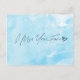 Social distancing can be hard, but you don‘t have to miss out on your connections. This simple, but sweet postcard reads "I Miss Your Face" is a handwritten typeface with a little scribbled heart on a soft blue watercolor background. Surprise someone you miss with a postcard today! Design by The Spotted Olive.