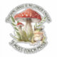Watercolor illustration of frog and mushrooms with the text "Touching grass is no longer enough. I must touch moss."