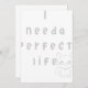 This design features a whimsical and minimalist aesthetic. It includes the phrase "I need a perfect life" written in a playful, uneven grey font that gives a casual, hand-drawn effect. Below the text is an adorable cartoon-style illustration of a small, smiling cat. The cat has large eyes, a heart-shaped nose, and wears a collar with a bell, enhancing its cute and friendly appearance. The overall design has a soft, light-grey colour scheme and conveys a mix of charm and humour, perfect for products aimed at cat lovers or those who enjoy lighthearted expressions.
