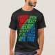 I give wanted to give this a 4 instead of a 5 because these Basic DARK T0shirts run unexpectedly SLIM or Narrow. Which is great if you do not have a potbelly, but I have a paunch. It isn't the shirt's fault that I've got a beer belly. The design and shirt itself is a quality cotton shirt. The color is more of a deep purple, but still a very pretty color. The Basic DARK T-shirts run a bit SLIMMER than the Basic Ts. The neck is a fraction narrower (or seems to be narrower) also. I'm a paunchy middle-aged woman and my neck is 12 inches (31cm) thick and the neckline fell about the same as in the photo of the man, and I had the desire to tug it a bit. So if you're a thick necked man or like loose shirts, be aware these are slimmer shirts. Once I get rid of my lockdown paunch it'll look great. The shirt washed well in cold water with no apparent bleeding. We don't have a dryer, so it hung dry. Did not shrink. Love the colors and the design. The design looks smaller on my shirt than it does on the model on-line. But still, it looks good on the shirt. The printing looks as it does on the model, just the size seems fractionally smaller. Washed garment in cold water, hung dry and design appeared unaffected.