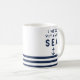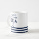 Suffering from a vitamin "sea" deficiency? Sip your morning coffee or tea from our cute, summery nautical mug featuring "I Need Vitamin Sea" in navy blue lettering with an anchor illustration and nautical stripe border.