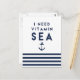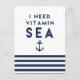 When you need a dose of what only the ocean can provide...you need some Vitamin Sea! Our nautical chic, summery postcard design features the quote "I Need Vitamin Sea" in bold navy blue lettering with an anchor illustration and a band of navy and white stripes along the bottom.