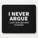 I Never Argue Just Explain Why I'm Right Funny Sar Mouse Mat