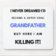 I Never Dreamed I'd Become A Super Cool Grandfather But Here I Am Killing It design. This is a short funny quote which is great as a gift for Grandfathers or Grandfather Figures. Also suitable as a general grandfather gift for Birthday, Christmas or Father's Day.