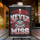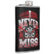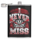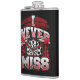 Highlight your accuracy with the DartRise Vinyl Wrapped Flask 8 oz., declaring "I Never Miss." This larger flask is perfect for the player who takes pride in their precision and skill, making it a must-have for any enthusiast with extra capacity for your drink.