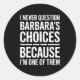 I Never Question Barbara's Choices Because I'm One Classic Round Sticker