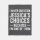 I Never Question My Jessica s Choices Because I'm Fleece Blanket