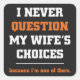 I Never Question My Wife's Choices Funny Husband Square Sticker
