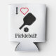 I ❤️ Pickleball in black, white, & red sticker. Can Cooler