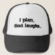 I Plan God Laughs Funny Recovery Spiritual Quote Trucker Hat