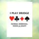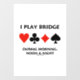 Showcase your wry bridge / duplicate bridge sense of humour with this window cling featuring the four card suits along with the following saying for avid bridge tournament attendees: "I Play Bridge During Morning, Noon & Night". Make others do a double-take at your mental stamina for the game of bridge with this bridge saying window cling today! Memorable bridge saying window cling for any bridge club.