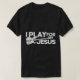 Religious-inspired graphic tee featuring a bass-playing Jesus in black and white print on a grey cotton crewneck.