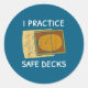 I Practice Safe Decks Trading Card Game Pun Humor Classic Round Sticker