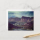 Inspirational quote custom postcard depicts a girl jogging, surrounded by amazing mountains and the beauty of nature and features Bible Verse Philippians 3:14, Forgetting the past... I press on towards the goal of the high calling of God in Christ Jesus. The back greeting can be modified or deleted for a blank card.~
