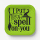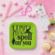 This classic Halloween design features the spooky phrase "I Put a Spell on You" in a bold, gothic-inspired font. The black and white colour scheme enhances the eerie atmosphere, making the design perfect for the Halloween season. Accompanying the text are iconic witchy elements, including a pointed witch's hat, a broomstick, a spider web, and a tiny spider, all arranged to create a bewitching composition. The subtle detailing of dots around the text adds a touch of magical charm.