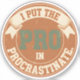 For the masters of putting things off, this retro-inspired design delivers the perfect brag. Featuring the quote “I Put the Pro in Procrastinate.” displayed on a bold badge or ribbon graphic, the slightly arched text puts extra emphasis on “Pro” for added flair. Muted retro tones of burnt orange, olive green, and cream combine with chunky vintage-style typography to create a playful, nostalgic look that’s painfully relatable. Perfect for students, creatives, and professional procrastinators.