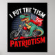 I Put The Tism In Patriotism Motorcycle Dinosaur Poster